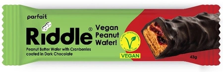 Barretta vegana al burro d'arachidi e mirtilli rossi ricoperta di cioccolato fondente 43 g – Parfait