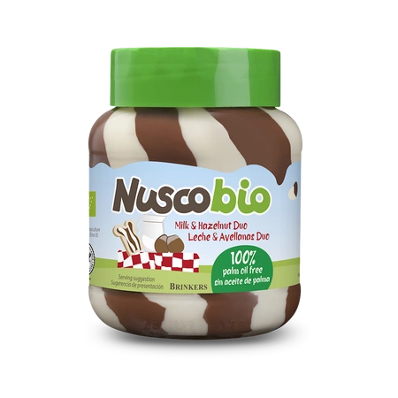 La crema duo bio nocciola-cacao-latte da 400 g di peso netto di NUSCOBIO è un'offerta unica per tutti gli amanti degli snack dolci. Il prodotto è caratterizzato da un sapore intenso e unico di nocciole, latte e cacao. È un'aggiunta ideale a molti dolci e dessert, oltre che una perfetta guarnizione per pancake, toast e panini. La colazione con questa crema fornisce molta energia, un perfetto inizio di giornata.