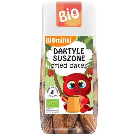 I datteri biologici senza semi possono essere utilizzati come spuntino dolce da soli o come aggiunta alla farina d'avena del mattino, ai dessert, alle torte, alle marmellate e a tutti i tipi di piatti. I datteri sono un ottimo sostituto dei dolci nella dieta dei bambini.