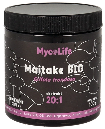 100% estratto biologico di Maitake (Grifola frondosa), standardizzato a un contenuto minimo del 40% di polisaccaridi.