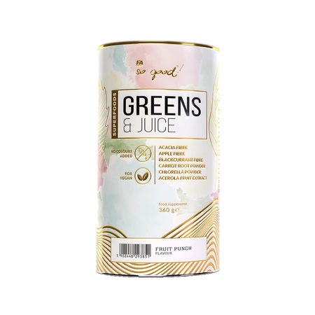 Fibre Greens & Juice è un integratore alimentare al gusto di frutta contenente una composizione accuratamente selezionata di fibre e polveri ed estratti vegetali, che integrano perfettamente la dieta quotidiana. Grazie al contenuto di vitamina C proveniente dall'estratto naturale di acerola, il prodotto favorisce il corretto funzionamento del sistema immunitario.