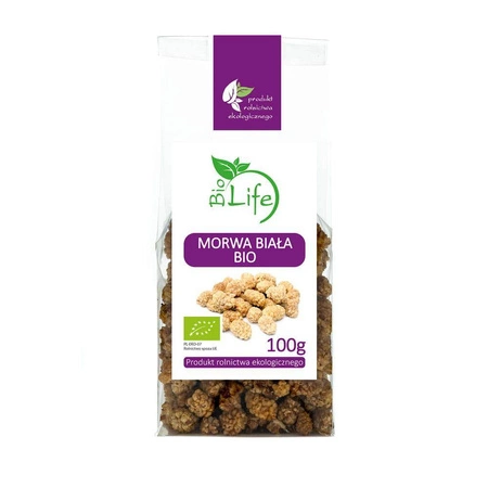 Si senta sano ed energico tutto l'anno scegliendo i prodotti biologici non trasformati del marchio BIO LIFE! I frutti di gelso bianco contengono grandi quantità di antociani nella loro composizione. Si tratta di composti con effetti antiossidanti. Le antocianine aiutano a ridurre il rischio di malattie cardiovascolari. Presentano anche proprietà chemioprotettive. I componenti attivi del gelso influenzano la conversione degli zuccheri complessi in zuccheri semplici. Riducono l'assorbimento intestinale degli zuccheri semplici, un effetto benefico per i diabetici. I frutti di gelso bianco sono un'aggiunta ideale a composte, dessert e marmellate. Sono ottimi anche come snack a sé stante.