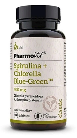 Integratore alimentare di spirulina + clorella blu-verde (500 mg) senza glutine 180 compresse - PHARMOVIT (CLASSIC)