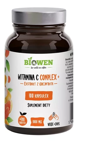 Vitamin C Complex+ Biowen è un integratore alimentare naturale studiato per fornire un supporto quotidiano al sistema immunitario, proteggere le cellule dallo stress ossidativo e sostenere la produzione di collagene. Grazie ai suoi ingredienti accuratamente selezionati, il prodotto supporta anche il corretto metabolismo energetico e il funzionamento del sistema nervoso.
