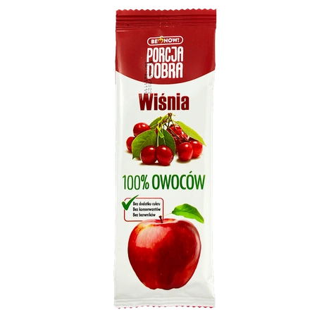 Lo snack Porcja Dobra alla mela e alla ciliegia è la scelta perfetta per chi cerca dolci sani e naturali. Contiene il 100% di frutta, senza zuccheri aggiunti, per cui potete godervi il gusto dolce senza rimorsi.