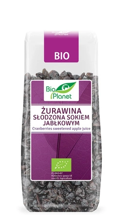 I mirtilli rossi essiccati biologici addolciti con succo di mela sono uno snack autonomo eccellente e nutriente. Li consigliamo anche come aggiunta a dessert, cereali per la colazione, torte, gelati e come ingrediente di salse e piatti di carne.