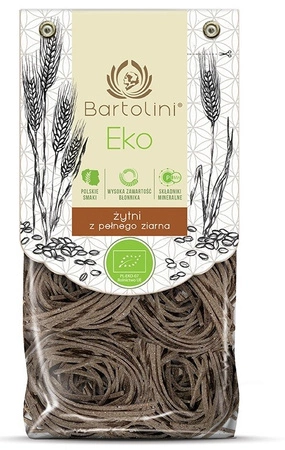 Bartolini Eko è una serie di pasta creata con le materie prime naturali dell'agricoltura biologica. La pasta integrale Eko è ottenuta da farine biologiche poco lavorate, che conservano la ricchezza del valore del chicco intero. Nella selezione delle materie prime, ci preoccupiamo sia della loro origine naturale che delle loro qualità gustative. Questi prodotti sono certificati per l'agricoltura biologica. La pasta di segale integrale Bartolini è un'ottima alternativa alla classica pasta di grano. Come qualsiasi altro cereale, la segale è una fonte di carboidrati, vitamine del gruppo B e fibre alimentari. Il valore biologico delle proteine della segale è superiore a quello del grano. La fibra alimentare ha un effetto benefico sui processi digestivi, prevenendo stitichezza, flatulenza, crampi allo stomaco e cancro al colon. La segale è una fonte di composti fenolici con proprietà antiossidanti, ossia protegge le membrane cellulari dai danni.