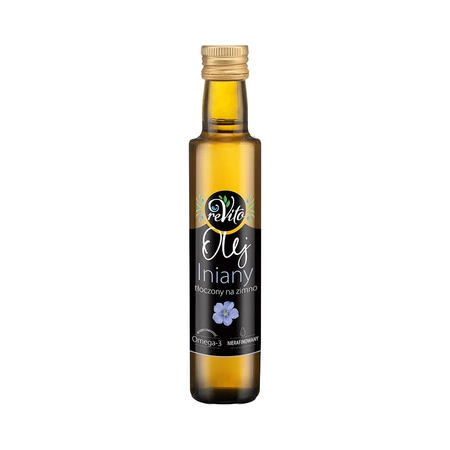 L'olio di semi di lino reVito è spremuto a freddo dai semi di lino. L'olio non è raffinato, mantenendo così tutte le sue preziose proprietà nutritive. È una fonte di acidi grassi omega-3, che contribuiscono al normale funzionamento del sistema cardiovascolare, aiutando a mantenere livelli normali di lipidi nel sangue. È un prodotto vegano, senza zuccheri e senza glutine, destinato esclusivamente al consumo a crudo.