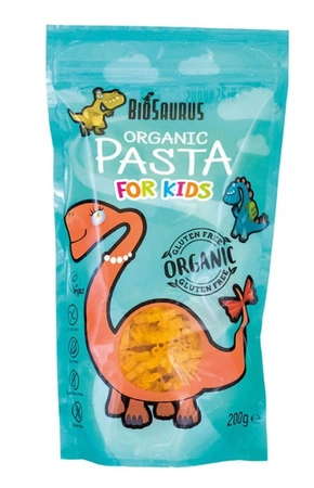 Pasta per bambini a forma di dinosauro. Senza glutine, senza uova, vegana. Tempo di cottura 11-13 minuti.