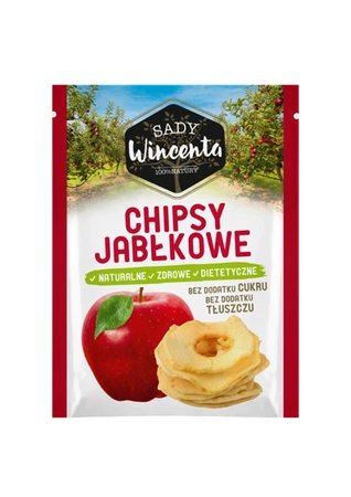 Patatine di mela naturali senza conservanti, zuccheri o grassi aggiunti. Realizzate con mele sbucciate e senza semi, che vengono tagliate a fette ed essiccate con aria calda. Questo fa sì che le patatine di mela conservino il gusto e l'aroma della frutta fresca.