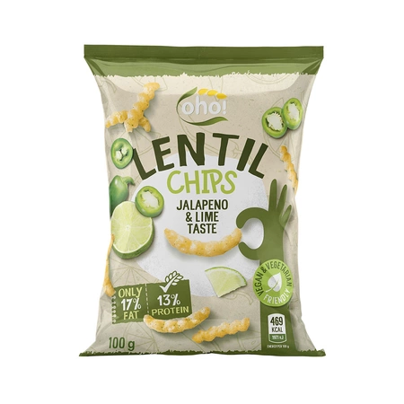 Le patatine di lenticchie al gusto di jalapeno e lime di Oho sono una novità sul mercato degli snack salutari. Le patatine Oho si distinguono per la loro ricetta originale e innovativa e per la loro composizione semplice: i prodotti non contengono glutammato monosodico e olio di palma. Le patatine di lenticchie contengono fino al 13% di proteine e hanno solo il 17% di grassi, una percentuale significativamente inferiore rispetto alle classiche patatine. La miscela unica di spezie le rende irresistibili. Le delizie di lenticchie sono adatte a vegani e vegetariani.
