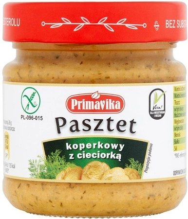 I prodotti Primavika sono prodotti vegetariani. Prodotti con materie prime provenienti da fonti autoctone e comprovate, non geneticamente modificate. Paté di aneto con ceci. L'aneto è associato principalmente alle tisane per bambini e come aggiunta alle patate. Non dobbiamo dimenticare che migliora la secrezione dei succhi gastrici, ha un effetto diuretico - importante per la pulizia dei reni, migliora la digestione e l'assorbimento degli alimenti inibendo la crescita di microrganismi nocivi nell'intestino. Migliora la salute della nostra barriera intestinale, responsabile della salute di tutto il corpo e anche del nostro umore grazie al collegamento con il cervello attraverso l'asse intestino-cervello. L'aneto contiene molta vitamina C e beta-carotene. Abbinato ai ceci e alle verdure, costituisce una proposta dalla composizione equilibrata.