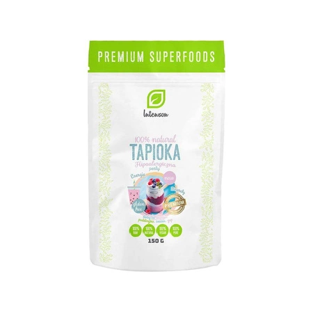 Intenson utilizza una tecnologia all'avanguardia nella sua produzione e i prodotti sono certificati. La tapioca viene estratta dalla manioca, una pianta esotica che è un alimento base della dieta in Sud America. Fornisce all'organismo energia sotto forma di carboidrati con minerali preziosi. È facilmente digeribile e non contiene glutine, per cui è particolarmente indicata per le persone intolleranti a questo allergene. La tapioca può essere utilizzata come aggiunta a zuppe, salse e, grazie alla sua forma unica, sotto forma di piccole perle per decorare i dessert. È anche un'aggiunta caratteristica al cosiddetto tè Buble.