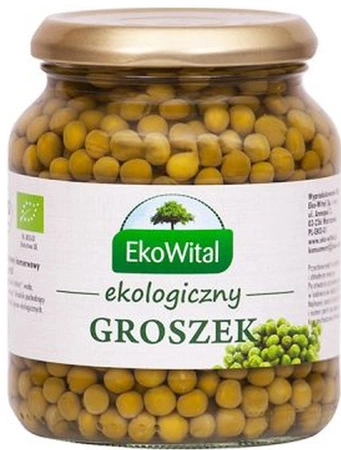 EkoWital distribuisce e importa prodotti biologici e naturali. Piselli verdi BIO in marinata in un barattolo. I piselli nella loro composizione contengono quantità significative di vitamine del gruppo B, in particolare la vitamina B3, che ha un effetto sulla riduzione del livello di colesterolo nel sangue. Inoltre, contengono vitamina K, che aiuta il sangue a coagulare correttamente. Il vasetto è una confezione sicura: i suoi micronutrienti non penetrano nel cibo. Dopo averlo svuotato, può essere riutilizzato. I piselli in barattolo hanno un contenuto di sale inferiore rispetto a prodotti in scatola simili.
