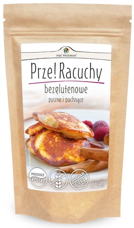 Five Transformations racakes istantanei di farina d'avena senza glutine (Prze!Racuchy) sono un prodotto che non contiene prodotti animali. Saranno una scelta eccellente per i vegetariani e i vegani, così come per chi si preoccupa di un'alimentazione sana e per chi segue una dieta senza glutine. Non contengono zucchero né mais. Inoltre, non contengono farina di riso bianco o esaltatori di sapidità. Il contenuto della busta può essere mescolato con kefir e uova, ma se desidera un pasto 100% vegano, può utilizzare solo acqua per prepararli.