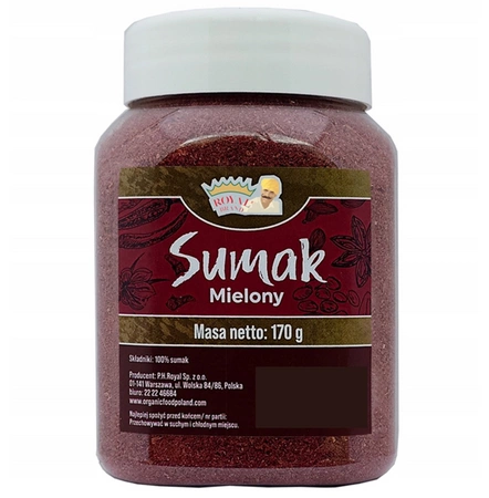 Il sommacco macinato di Royal Brand è una spezia unica, popolare in molte cucine del Mediterraneo e del Medio Oriente. Estratto dal frutto dell'arbusto del sommacco (Rhus coriaria), il sommacco viene essiccato e macinato in una polvere marrone rossastra. È caratterizzato da un sapore e da un aroma intensamente aspri e limonosi, che lo rendono un'eccellente aggiunta a molti piatti. In cucina si usa nelle insalate, nei piatti di carne, nel pesce e come aggiunta all'hummus o ai falafel.