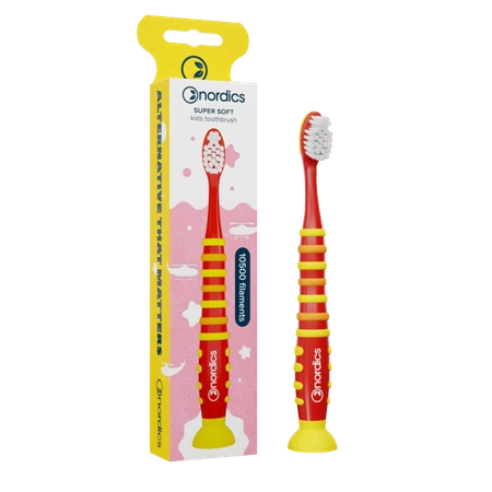 Questo spazzolino unico di Nordics è stato progettato appositamente per i bambini di età superiore ai 4 anni. Grazie alle sue 10500 setole super morbide, è estremamente delicato su denti e gengive giovani e sensibili, pur garantendo una pulizia efficace.