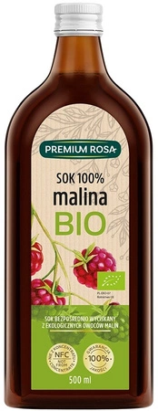 Premium Rosa offre prodotti di alta qualità creati con frutta ed erbe nell'interesse della salute. Il succo di lampone NFC 100% BIO è ottenuto dalla spremitura diretta della frutta cruda. NFC (Not From Concentrate) è un'abbreviazione internazionale che garantisce la qualità e che il succo non è ricostituito da un concentrato. I composti caratteristici del succo di lampone sono i polifenoli, tra cui predominano gli ellagotannini e gli antociani. Inoltre, contengono acidi organici, tra cui acidi fenolici e flavonoli, che hanno un effetto antiossidante. Hanno un effetto sulla pulizia del corpo dai radicali liberi dell'ossigeno che contribuiscono alla formazione del cancro. Il gusto, l'aroma e il colore possono variare a seconda delle varietà, dell'esposizione al sole e dell'idratazione della frutta nel lotto. La sedimentazione è un fenomeno naturale, da scuotere prima del consumo. La materia prima naturale viene pastorizzata a basse temperature. In questo modo il succo si mantiene fresco a lungo. Viene imbottigliato in vetro scuro per proteggerlo dai raggi solari, che potrebbero causare la decomposizione dei preziosi ingredienti.
