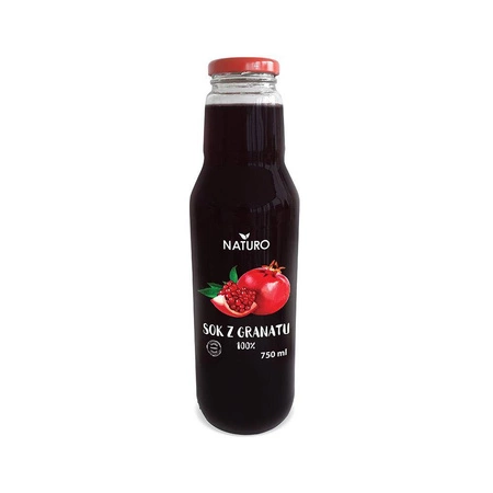 Il succo di frutta di melograno del marchio Naturo non contiene additivi inutili. Il frutto del melograno è ricco di potenti antiossidanti che combattono i radicali liberi, rallentando il processo di invecchiamento delle cellule del corpo umano. Inoltre, il succo di melograno fornisce molte vitamine, tra cui B2, C ed E, oltre a preziosi minerali (zinco, magnesio, potassio, fosforo, ferro). Il succo di melograno può essere aggiunto al tè e, diluito con acqua, crea una bevanda gustosa e rinfrescante.