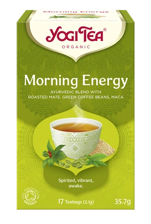 Iniziate la giornata pieni di vitalità con YOGI TEA® Morning Energy. Questa esclusiva miscela ayurvedica contiene yerba mate tostato, caffè verde e matcha, noti per le loro proprietà energizzanti. Ideale per chi desidera accogliere il mattino con una spinta naturale e un'ispirazione. Con la sottile luce del sole che illumina la stanza, è il momento perfetto per assaporare il gusto squisito di questo tè per risvegliare i sensi e portare gioia all'inizio di un nuovo giorno. YOGI TEA® Morning Energy non è solo un tè, è una celebrazione della vita e delle nuove possibilità che ogni mattina porta con sé.