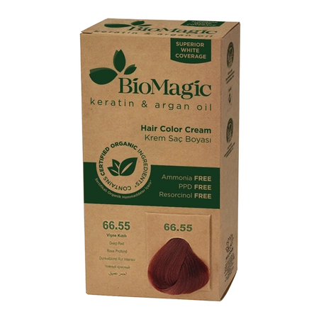 La tintura per capelli Biomagic nella tonalità rosso intenso (66.55) è un prodotto di alta qualità che fornisce un colore e una cura dei capelli intensi e duraturi. Il kit contiene tutto il necessario per eseguire la colorazione da soli a casa.