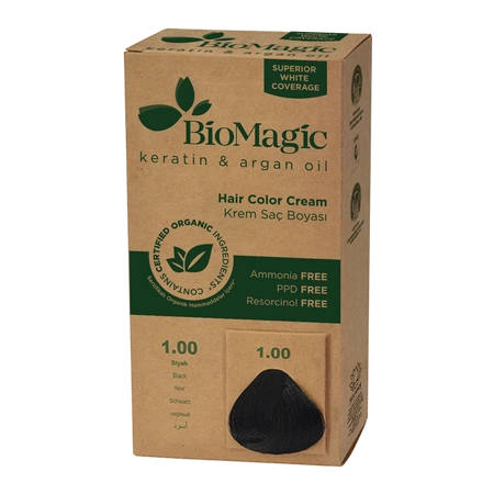 Il kit di colorazione Biomagic nella tonalità nera (1.00) è la soluzione ideale per chi vuole dare ai propri capelli un colore intenso e profondo e una cura extra. Grazie a ingredienti naturali come l'olio di semi d'uva, il burro di karité e l'olio di argan, i capelli non solo risultano splendidamente colorati dopo la colorazione, ma acquistano anche morbidezza e lucentezza. Il prodotto è facile da usare e garantisce un effetto colore di lunga durata.