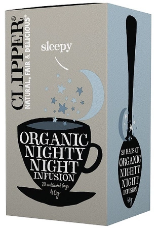 La tisana biologica "Nighty Night" di Clipper è una composizione naturale di erbe creata per il relax serale. La sua armoniosa combinazione di cannella, camomilla, melissa e rooibos è arricchita da un aroma naturale all'arancia, che conferisce all'infuso un sapore unico. Ingredienti come la camomilla e la melissa sono tradizionalmente apprezzati per le loro proprietà che favoriscono il rilassamento e il benessere. Il prodotto proviene da coltivazioni biologiche certificate.