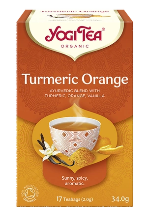 L'infuso ayurvedico YOGI TEA® Curcuma Arancia è una composizione speziata, dove la curcuma dorata si unisce all'arancia delicata e alla dolce vaniglia, creando un gusto intenso con una sottile dolcezza. Questo tè dal colore dorato e brillante delizia i sensi con il suo aroma dolce e speziato, regalando un piacere unico. Ideale da gustare al naturale, leggermente dolcificato, oppure con un po' di LATTE o un'alternativa vegetale.