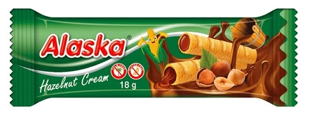 Tubetti di mais ripieni di crema alla nocciola senza glutine 18 g – Alaska