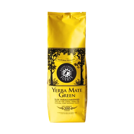 Original Yerba Mate Green Fuerte è una miscela che comprende mate verde e additivi in proporzioni variabili come foglie di ginkgo, bacche di goji, catuaba, menta, foglie di ribes e citronella. L'aggiunta dell'aroma di cactus arricchisce la miscela con un gusto delicatamente rinfrescante. Yerba Mate Green Fuerte ha un forte effetto stimolante. Il guaranà e il ginkgo contenuti nella yerba mate favoriscono la concentrazione. La catuaba è ricavata dalla corteccia di alberi considerati afrodisiaci dalla medicina popolare amazzonica. Le bacche di Goji arricchiscono la miscela di vitamina C. Le foglie di ribes nero e la citronella completano la composizione aromatica.