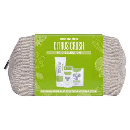 Zestaw Begamotka-Limonka z kosmetyczką: dezodoran 58 ml, pasta do zębów 100 ml, mydło 142g